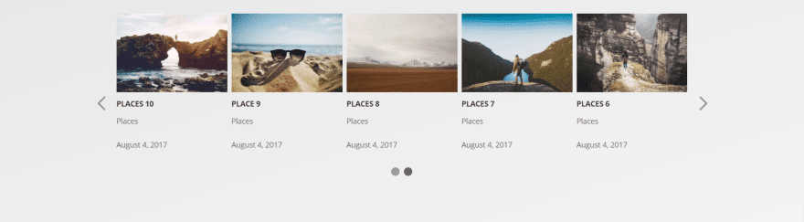 In this one I’ve added a background in the module itself and changed the item margin so the background shows between the posts. I’ve also changed the font colors and this time I adjusted the line height and spacing. It shows 4 posts per screen and I’ve reduced the thumbnail size. I set the arrows to large and controls to small.