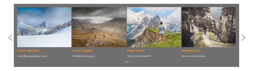 This one displays 4 images. I’ve increased the image size and decreased the item margin from 8 to 4. Next I adjusted the sizes and colors of the fonts, arrows, and controls. The title fonts have increased spacing.