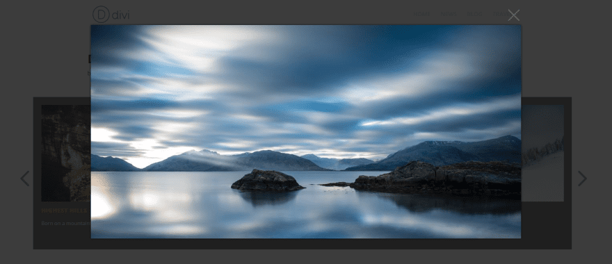 This is the standard design (I’ve added a background to help it stand out). It displays my last 10 posts in all categories. I’ve included the Divi header and post meta to show how it looks within the page. Clicking any of the images takes you to the post.