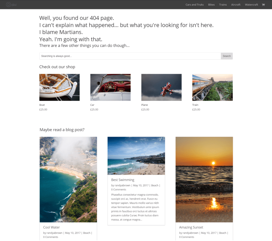 This is a great way to create 404 pages using the Divi Builder.