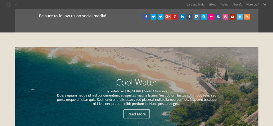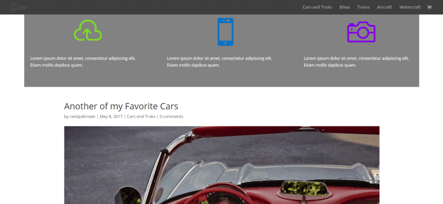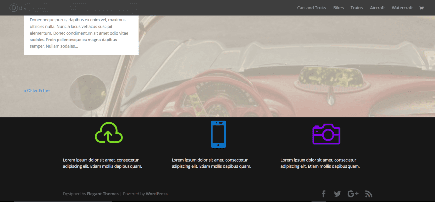 In this example I’ve placed it on a regular blog post that isn’t using the Divi Builder. Any of the locations work with regular posts and pages. This is a great way to add Divi layouts and add modules to regular posts. Above the content scrolls with the content.
