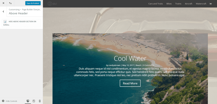 Above Header allows you to hide the content above the header when the reader scrolls.