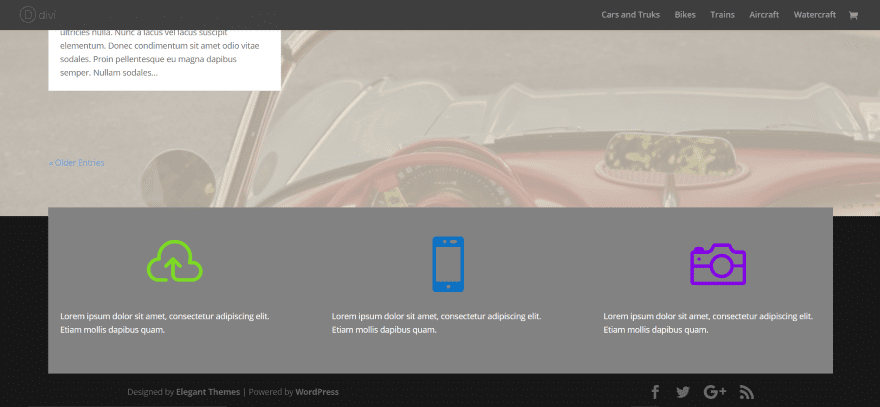 Here’s a look at my layout within the footer. It can be styled separately from the footer and it scrolls with the footer so it will stand apart from the content if you’re using parallax.