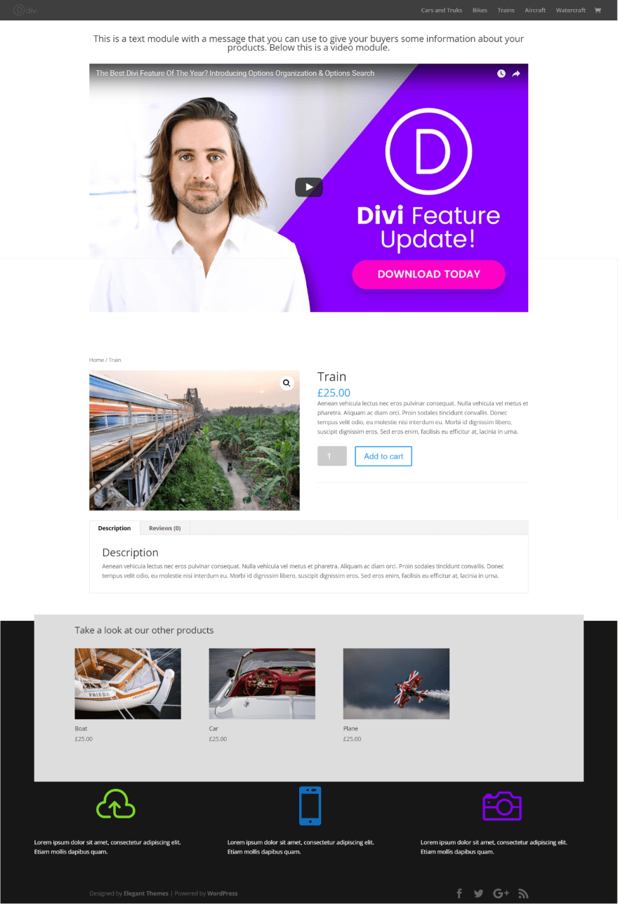 The result is a product page with Divi layouts above and below the product.