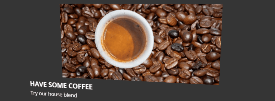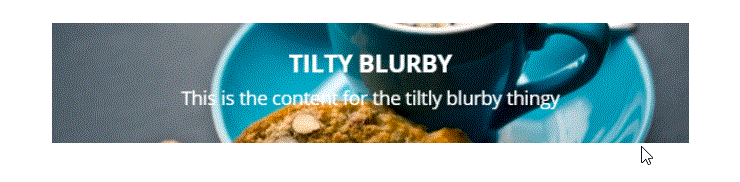 Here’s an example of how the 3D tilt looks before tweaking. I added a title, text, background, and icon. The tilt follows my mouse and sets the text and icon apart from the image giving it a 3D look. For me the parallax effect got rid of the background so I didn’t use it.