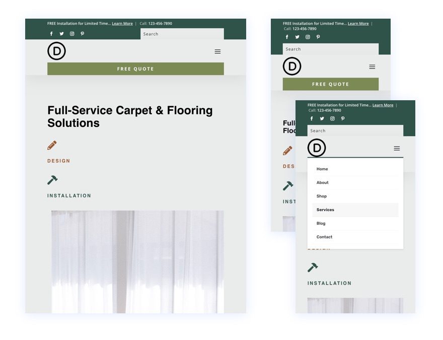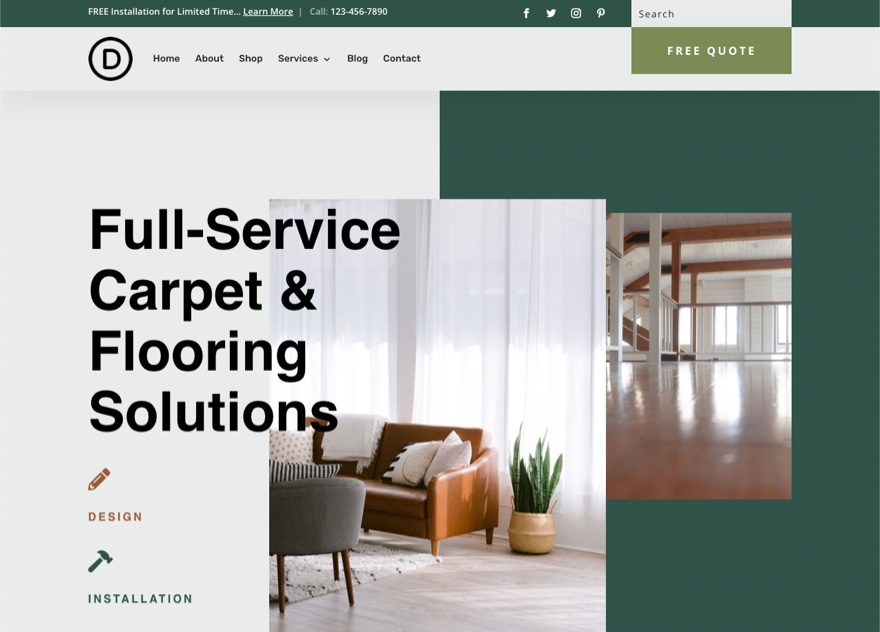 Hey Divi Nation! Thanks for joining us for the next installment of our weekly Divi Design Initiative where each week, we give away brand new freebies for Divi. This Monday, we shared a brand new Flooring Layout Pack. To help you get your website up and running as soon as possible, we’re sharing a global header & footer template that matches this layout pack perfectly as well! Hope you enjoy it.