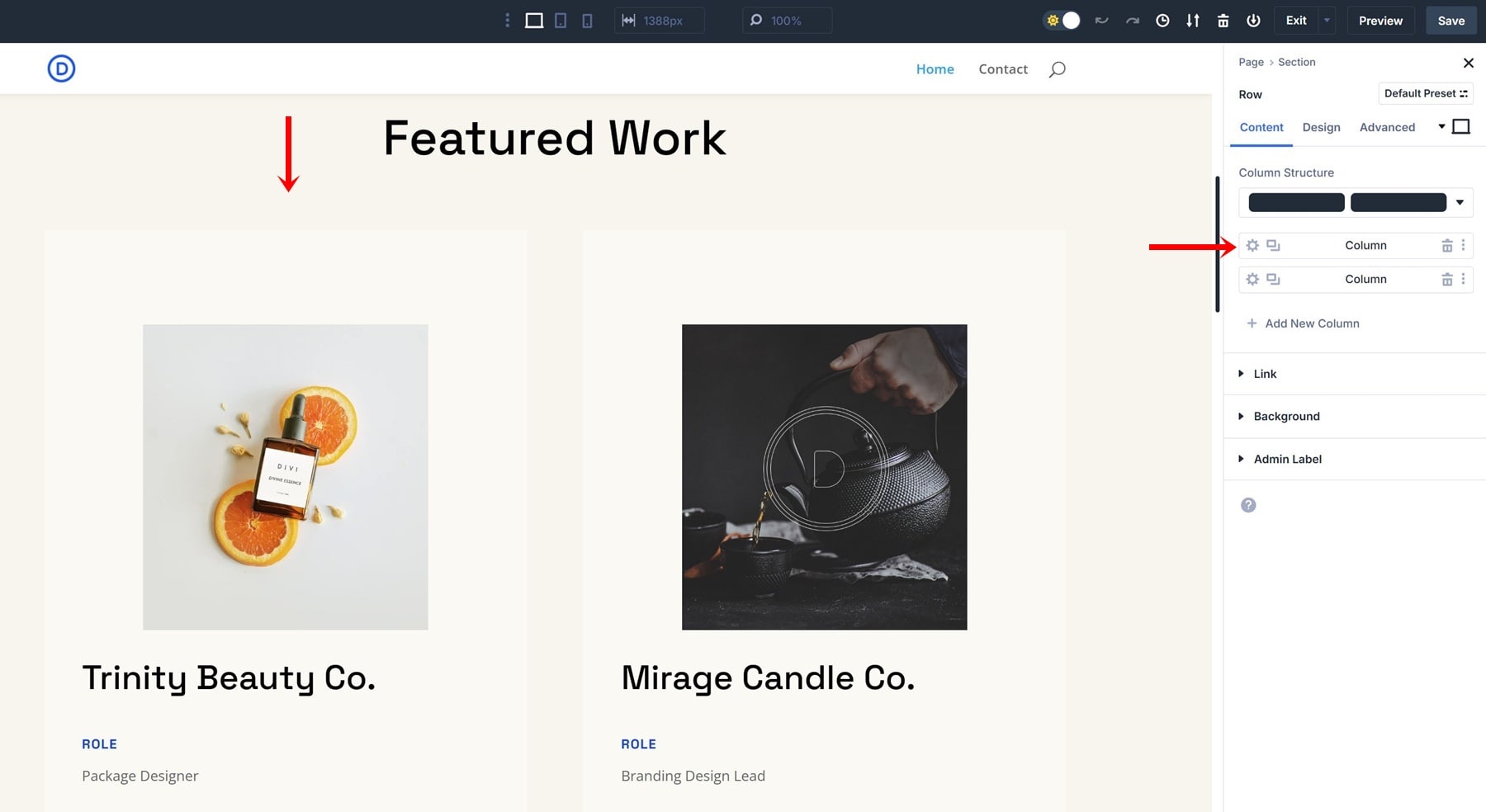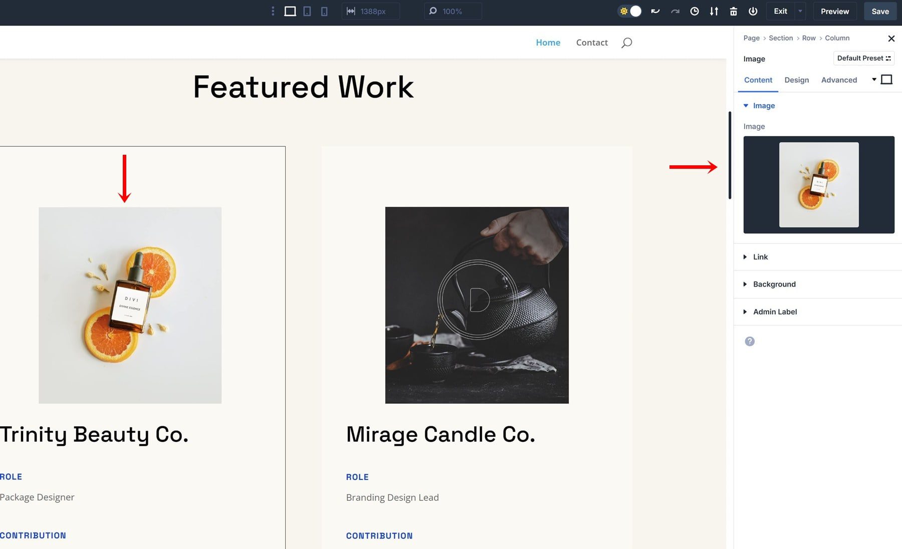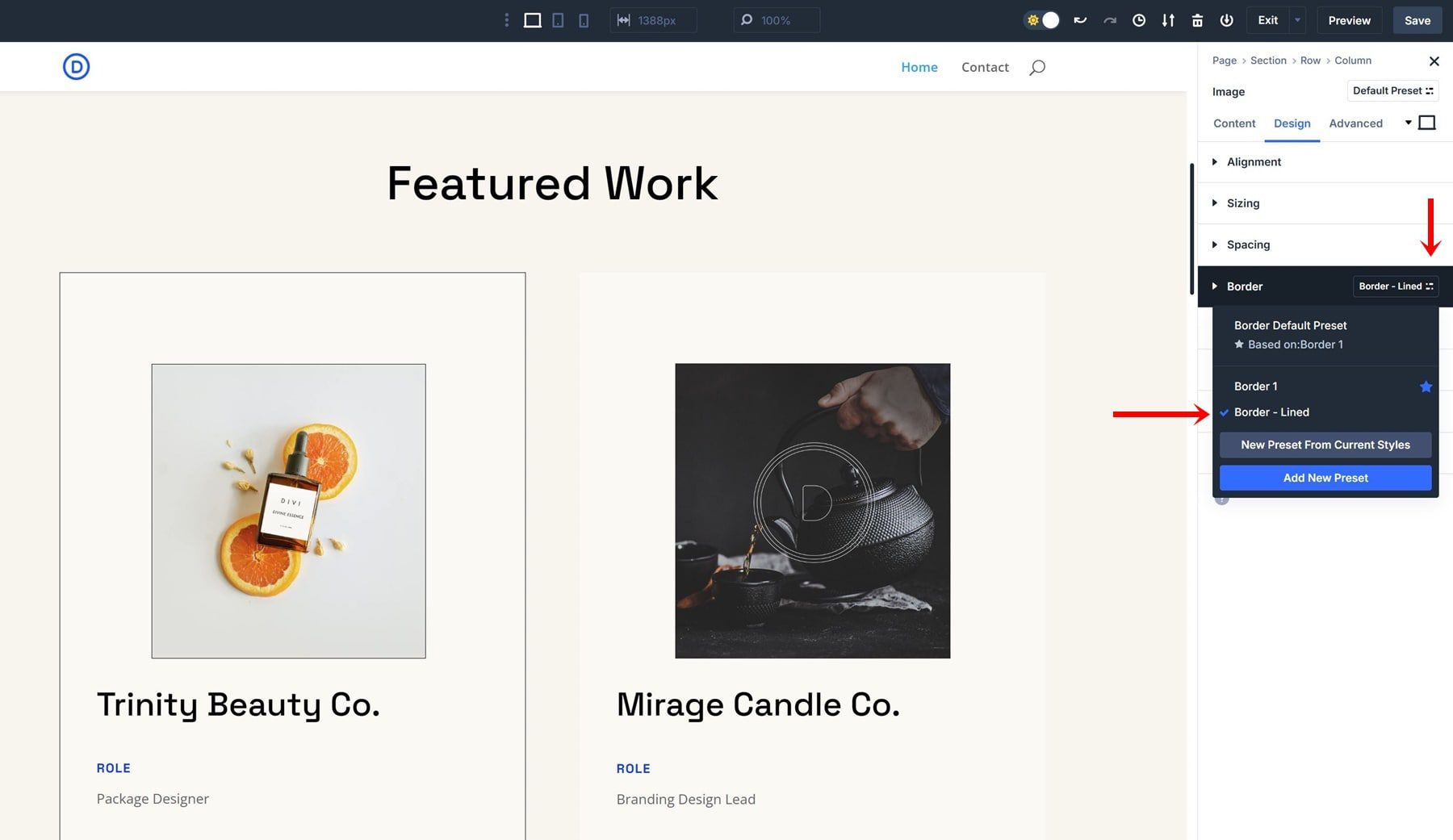 Creating an Option Group Preset is very straightforward; let’s go through the process of creating a border preset step by step. We’re using the homepage layout that comes with the Design Portfolio Layout Pack, but feel free to use any other layout of your choice.