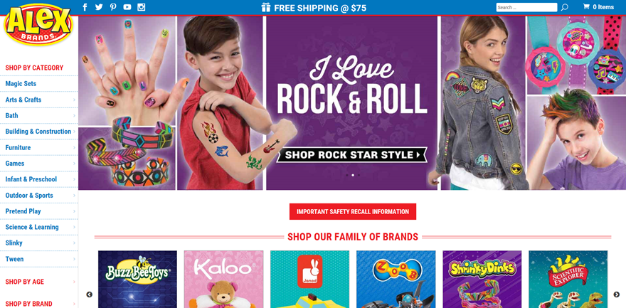 Alex brands is a Divi e-commerce website that sells all kinds of things for kids; from arts & crafts to furniture and games. The website immediately shows the kind of feeling they want to represent; playful and inviting.