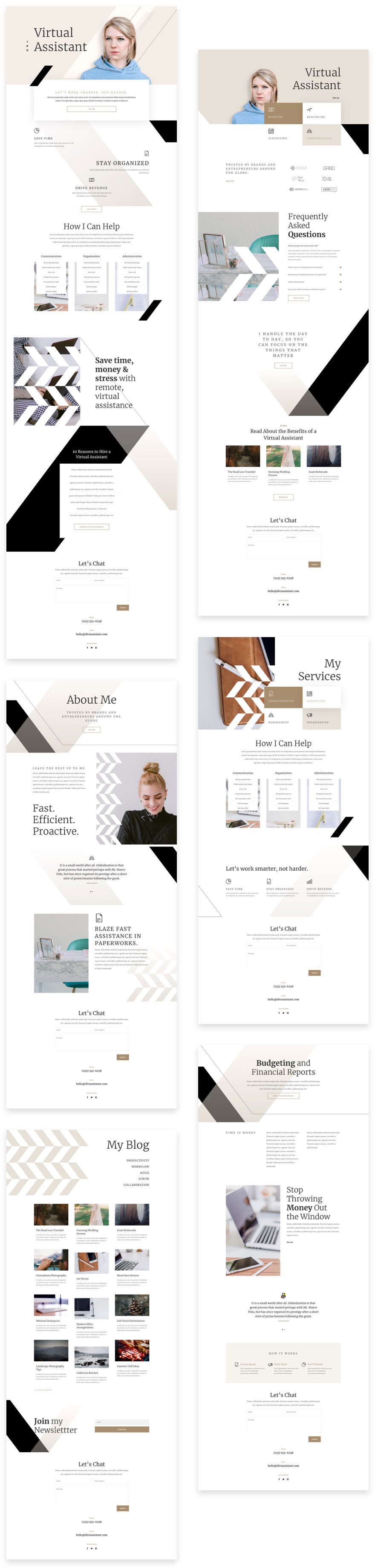 The Virtual Assistant Layout pack really offers valuable design needed for promoting a wide variety of virtual assistant services. The background images and icons are key additions. And the services page and service page are definitely a necessity.