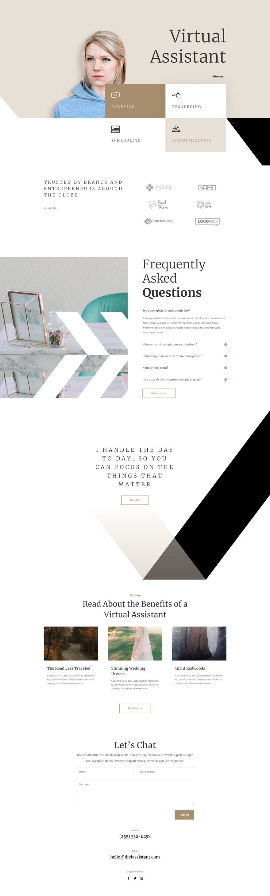 Another great layout for Divi. It’s clean and sleek. No licensing images are also huge advantage. I’ll use this layout if I need to create a virtual assistant website. Thank you.