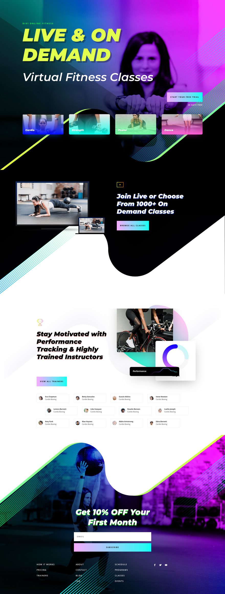 For this week, our design team has created a brand new Virtual Fitness Layout Pack. Virtual Fitness is a thriving industry. Fitness companies and instructors deserve an online presence that inspires their audience. And this Virtual Fitness delivers! The design is bold, clean, and strikingly colorful. And the included page layouts will make it easy to promote various programs, live and on-demand classes, and much more.
