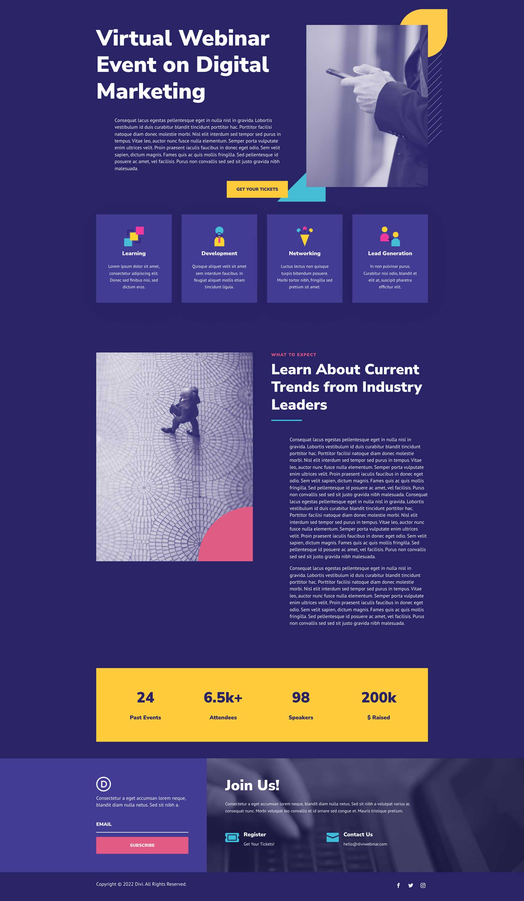 This time around, the design team has created a beautiful Webinar Layout Pack that’ll help you get your next website up and running in no time!