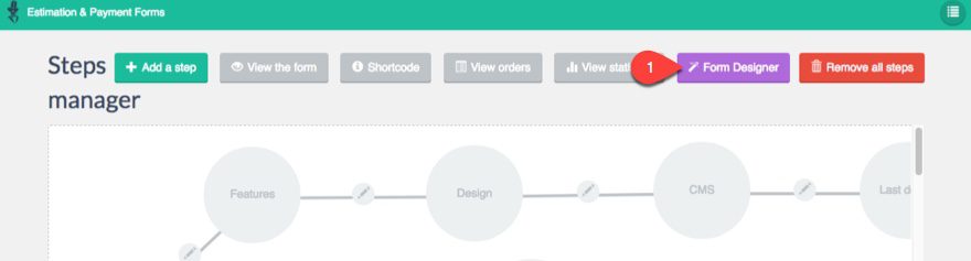 Go back to the steps manager and find the “features” step. This step contains the list of items that a user will select to calculate the cost of all the features they will need for their new site. Hover over it and click edit.
