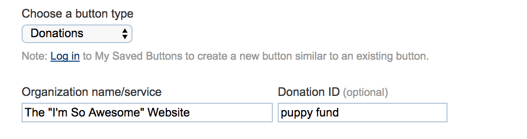 When you click the link to create a donate button, it will take you to the page where the magic happens. You should note, however, that Paypal will not prompt you to log in. Repeat: Paypal will not be prompt you to log in. You will be able to toward the end of the process, but don’t stress about it at this point–nothing has gone wrong.
