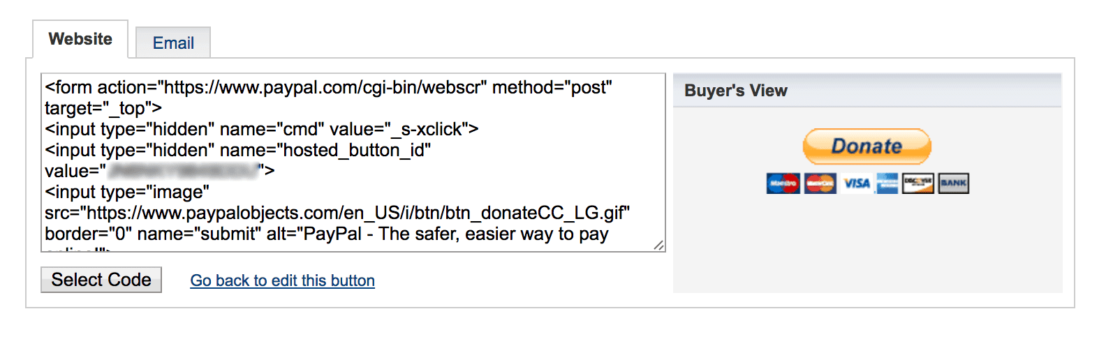 On the next page, you’re finally be given the donate button code that will live on your WordPress site, as well as an example of what the button will look like to your users.