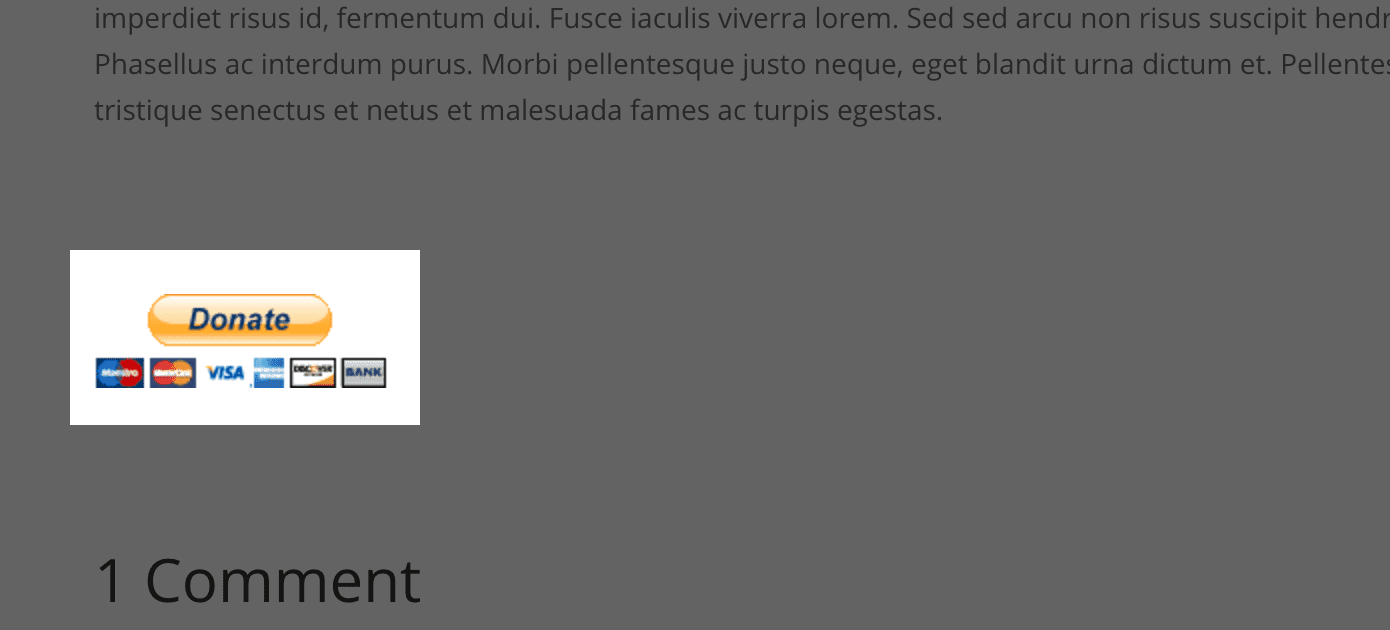 <div class=”paypal-donate”> PAYPAL DONATE BUTTON CODE GOES HERE </div>