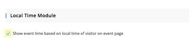 I’m going to select the option to show event time based on local time of visitor on the event page. This is a better user experience and I don’t have to worry about adding time zones and confusing visitors.