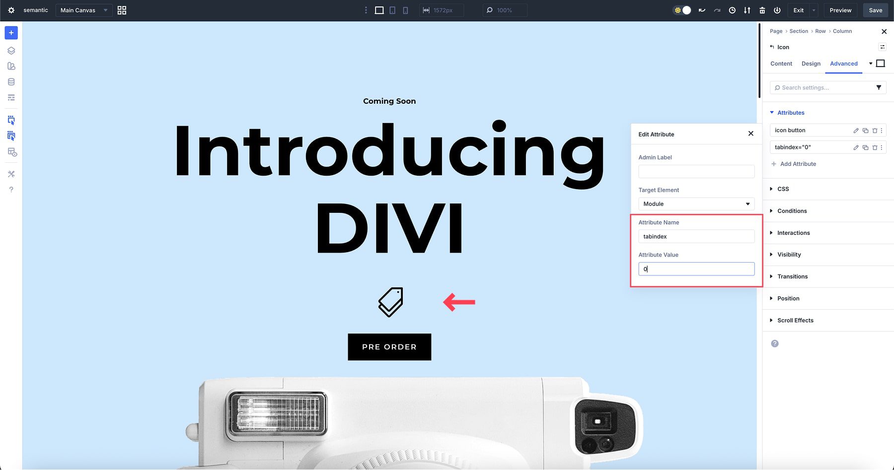 For years, Divi gave you CSS IDs and Classes for elements. That worked fine for styling and scripting, but attributes like ARIA roles or focus attributes, such as tabindex, required third-party plugins or custom code.