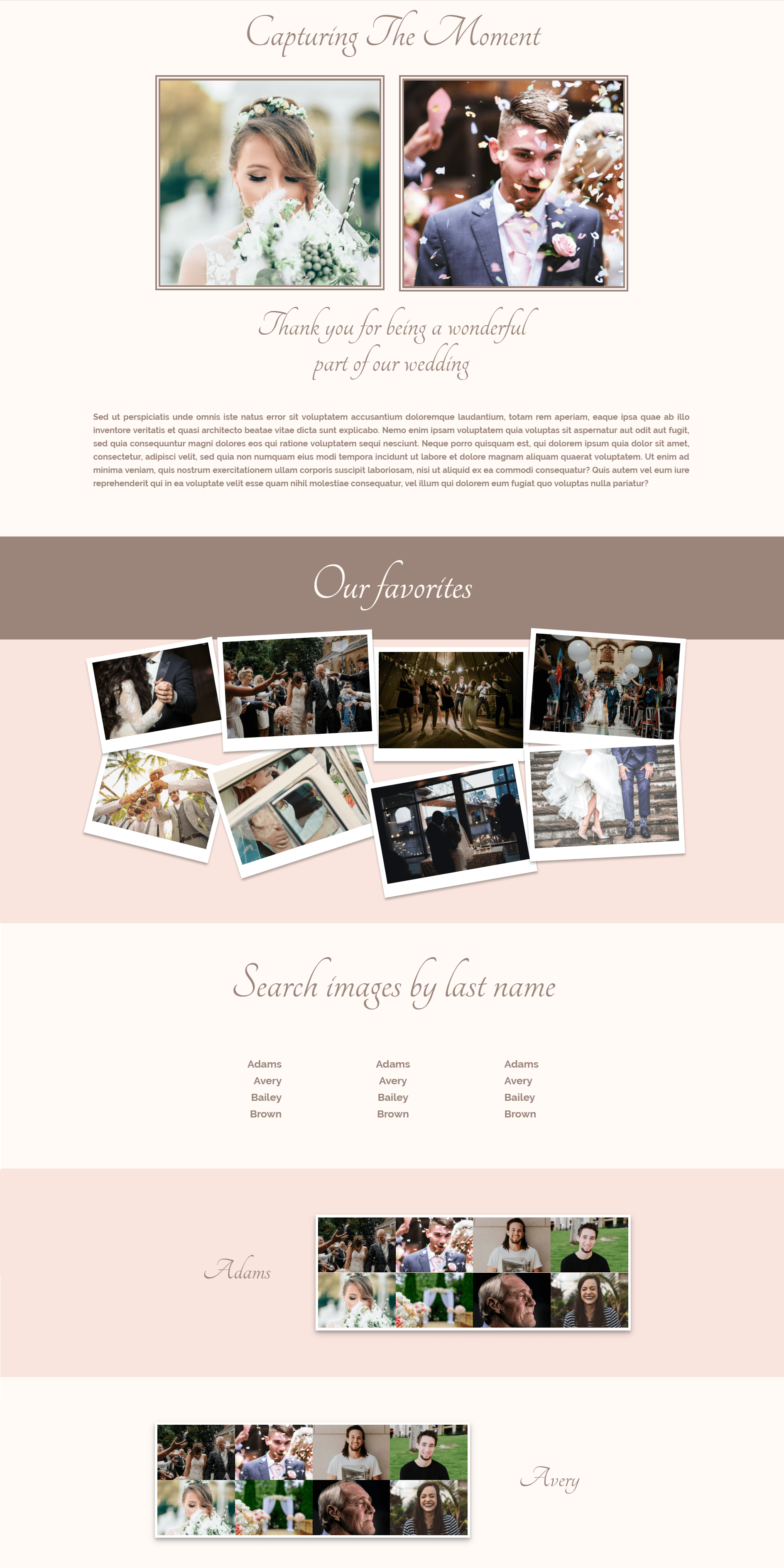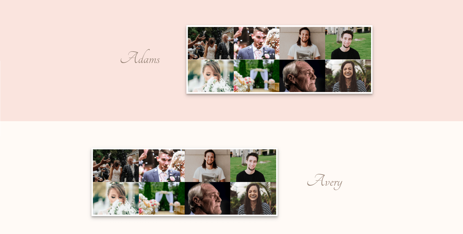 You can continue making gallery sections like that, depending on the number of family names that were present at the wedding.