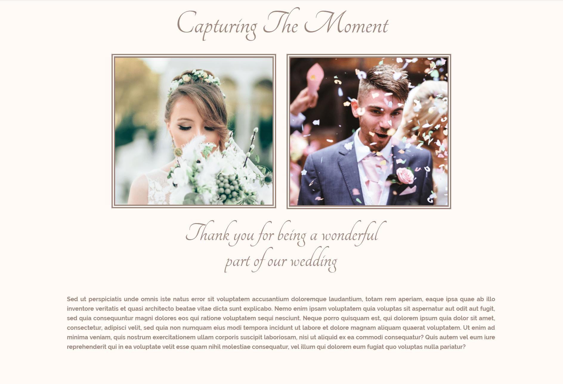 Moving on, you’ll have to create a section with two individual images of the bride and groom.
