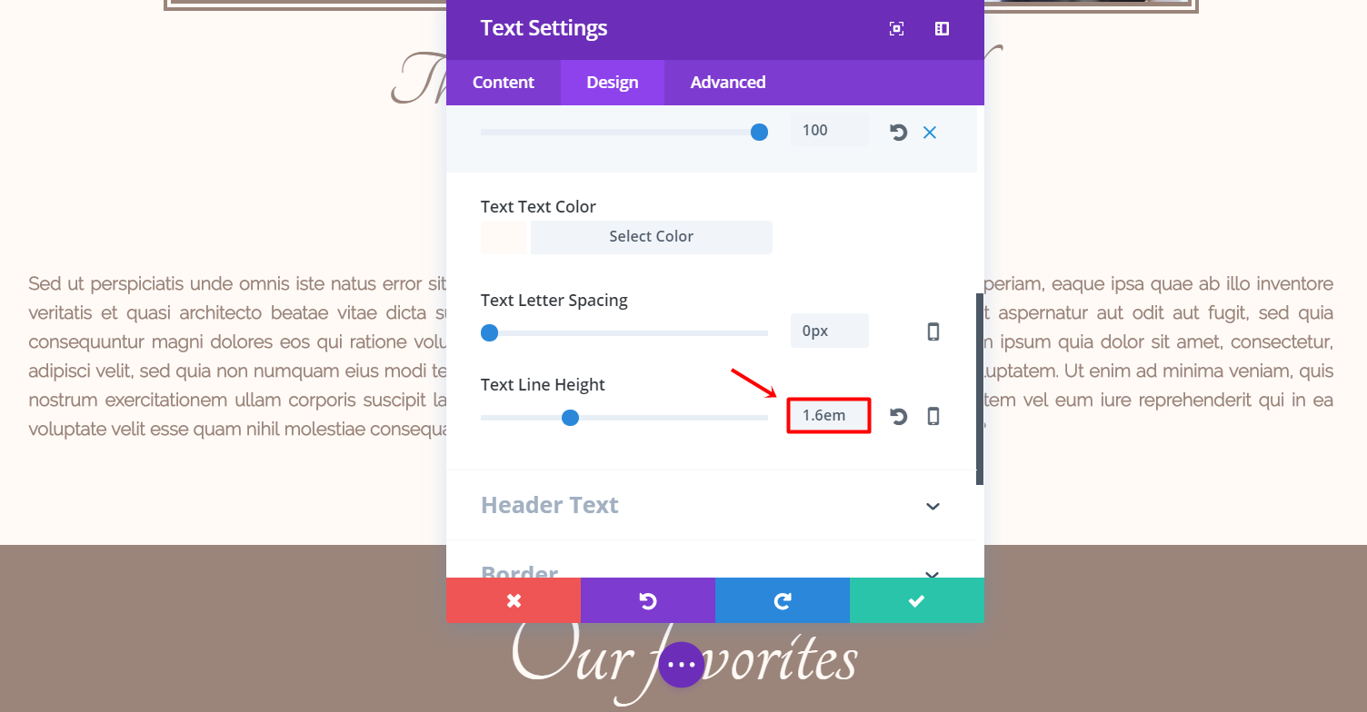 - Text Line Height: 1.6em