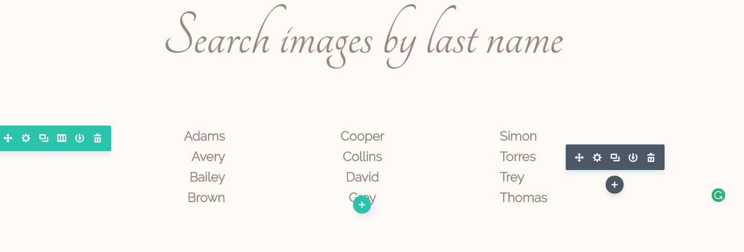 To start off, you need to show the list of last names and link them the section of the page where they’ll find the images.