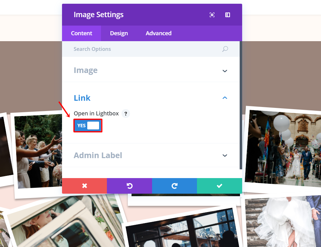 Also, make sure people can open the picture in this section by activating the Lightbox in the Link subcategory of the Content tab.