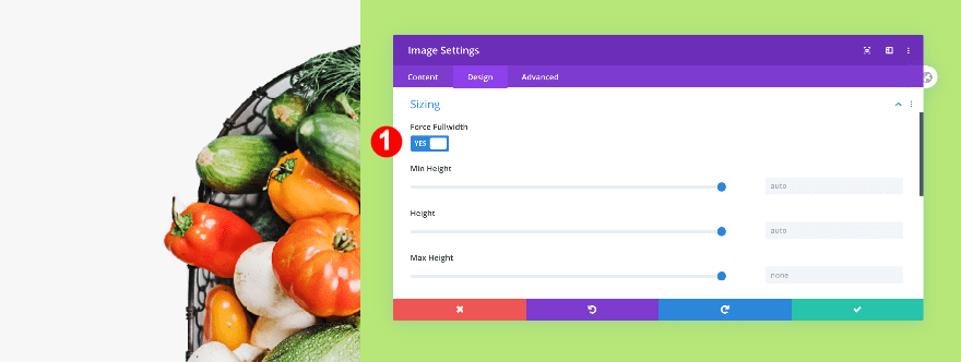 Adjust the row’s sizing as follows: