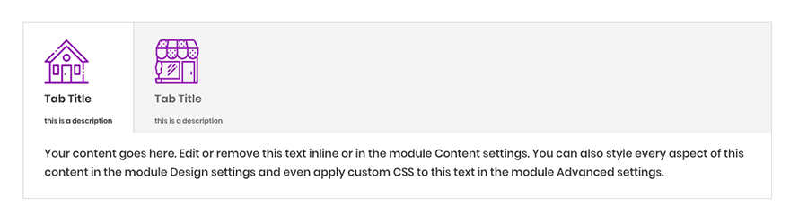 Within this design we will take advantage of the ability to add an image icon before some existing content as well as a small text description below. This is perfect for customising the Divi tabs module a little further than you are normally able to.