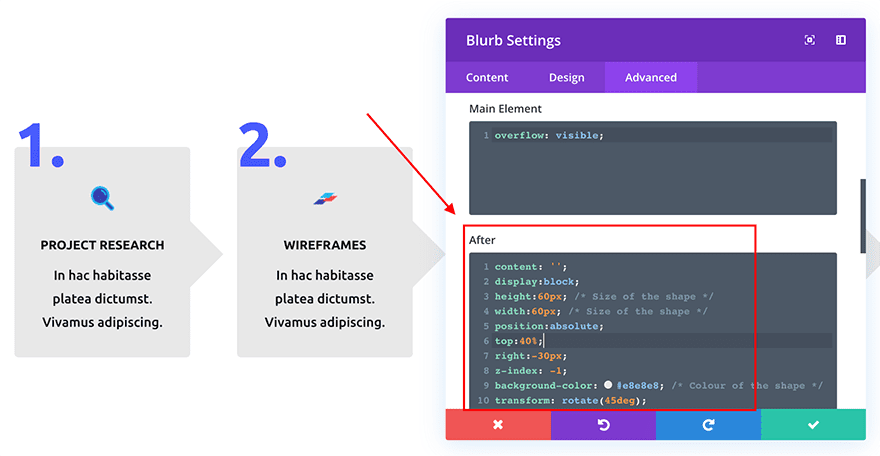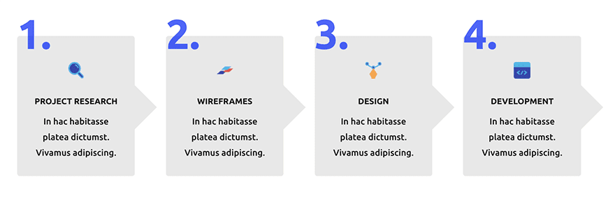 The blurb is probably one of the most flexible Divi modules at your disposal. In this instance we will use pseudo elements to add numbers before each blurb to create a step by step “how it works” section. We’ll also add an arrow shape to the right to indicate the process.