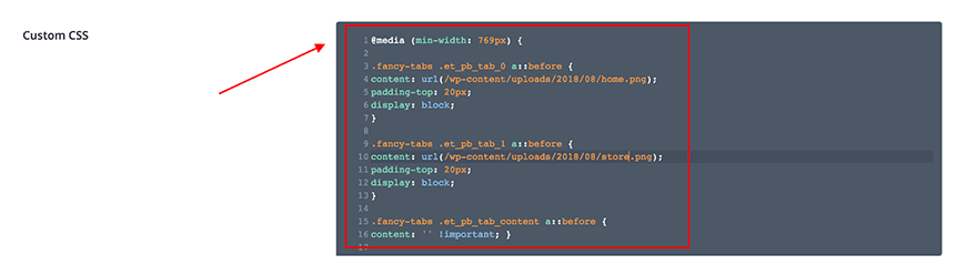 Once our content is in place, we need to begin adding content to the ::before element of the module. Since we cannot add custom CSS to specific tabs using the method we’ve followed above, we’ll need to accomplish this slightly differently.