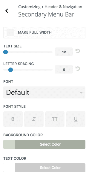 Next go to your Secondary Menu Bar settings and set your background and text colors. I’m choosing white as the text color because I’m going to be adding a round colored background to each social icon to match with my new menu color, so the icon needs to show up.