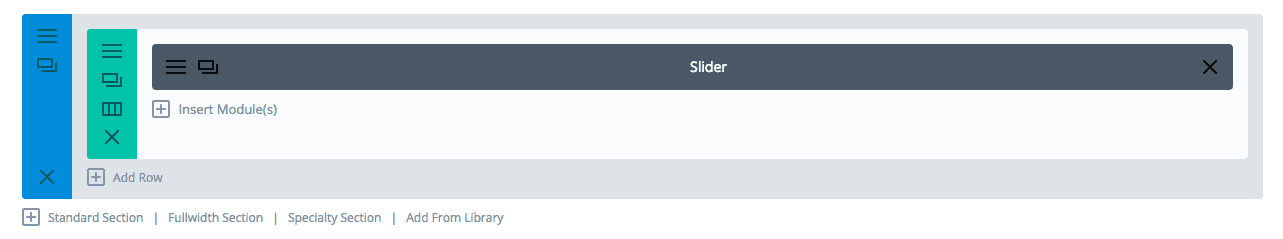 We’re going to start with a standard 1-column section and add a slider module to it.
