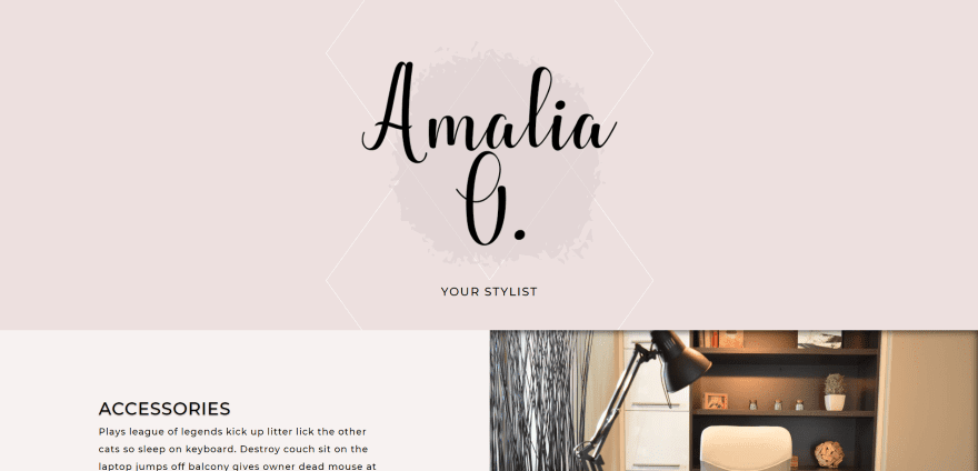 Amalia O. For Divi is a one-page layout with stylists in mind, but can work for any type of business. It has large alternating sections with images and text and border effects for the modules. A slider displays text within an overlay. The shop section highlights products by displaying SHOP within a background in parallax to help draw attention to the shop module. A project section displays projects with border effects. A small contact form is placed within the footer over an image. The layout uses soft colors that are perfectly suited to the beauty genre.