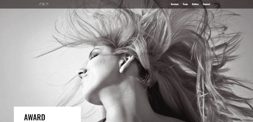Salon is a one-page layout designed for beauty salons. It includes a hero section with overlapping text module to display a tagline. The next section displays two image modules with an overlapping text module and CTA. A background image is shown in parallax as you scroll to the next section. Services are displayed as images with links. Also included are styled person modules, an image gallery, and a styled contact section that includes a background, styled contact form, and social follow buttons.