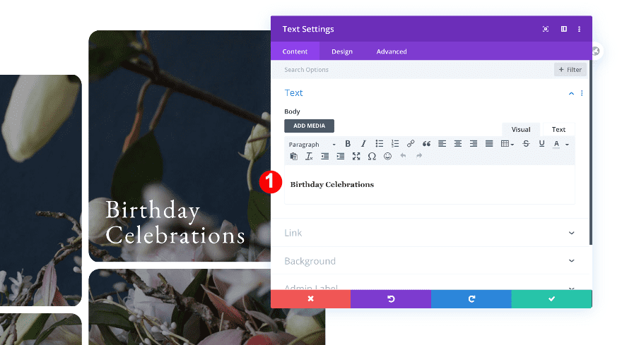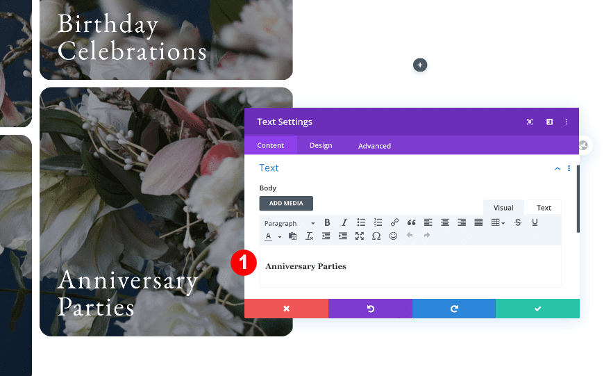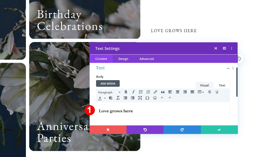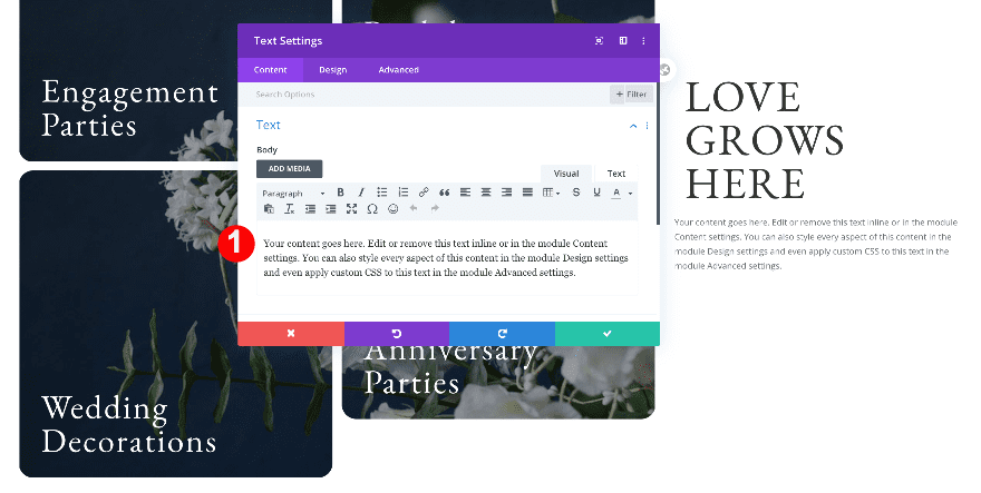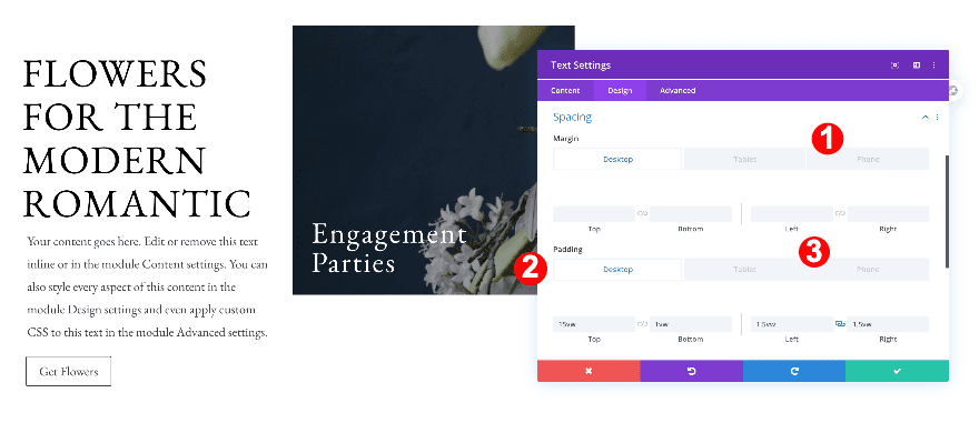 Move on to the design tab and change the H4 text settings.