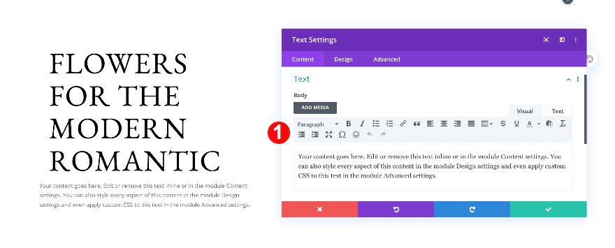 Now, add a second text module below the first. Insert some paragraph content.