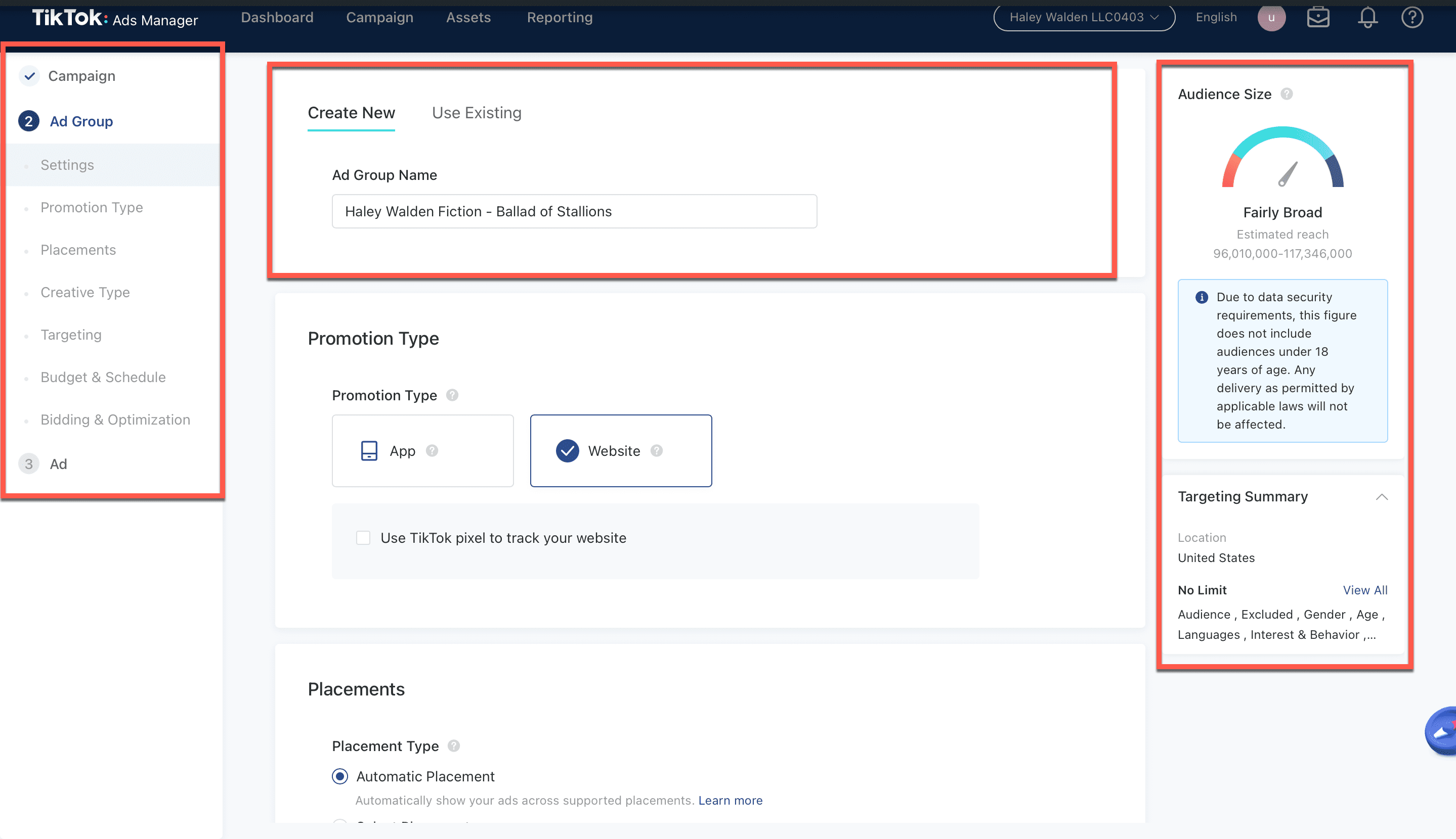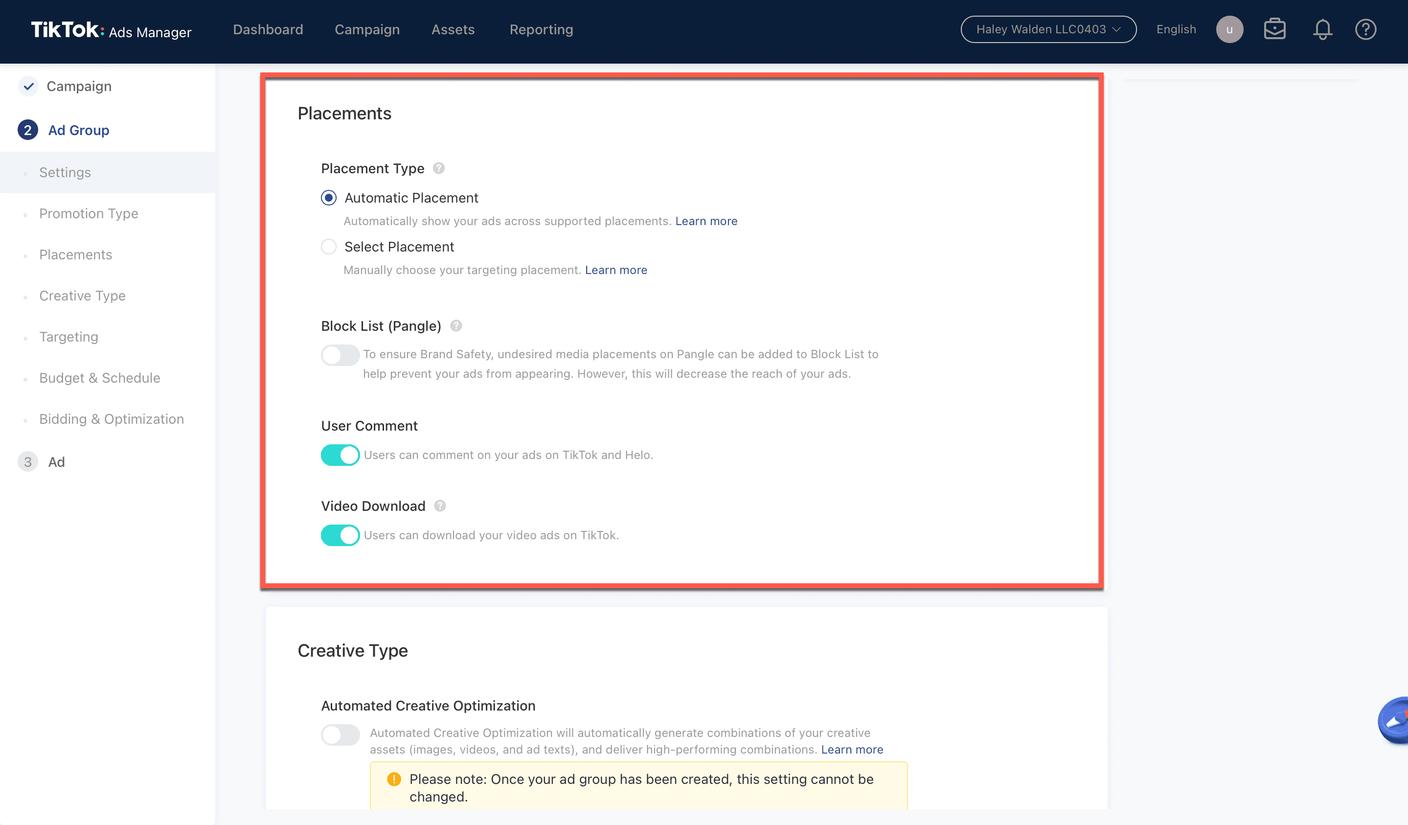 TikTok Ad Group Information