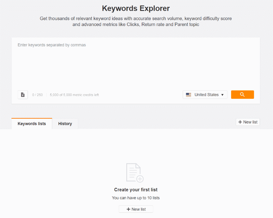 Here you can list all the keywords you want to research. It also shows a list of your keywords and the history of your searches. This is one of my favorite tools. I search 4 keywords about WordPress.