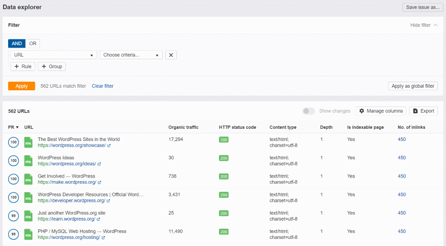 The very purpose of the Ahrefs (IMO) is to find out the pages, and: