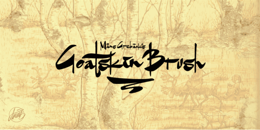 Goatskin Brush is a brush font with an Asian style. It has both thick and thin brush strokes. It includes upper and lower case letters, punctuation, and symbols. Thereβs a free version for non-commercial use, and there are lots of licenses to choose from.