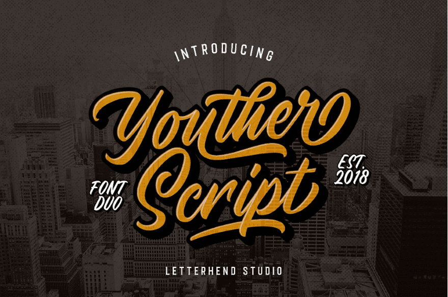 Youther is a font duo with standard and script fonts with a brush layered style. Itβs multi-lingual and includes upper and lower case, numbers, punctuation, symbols, ligature, stylistic alternate, contextual alternate, and swashes. It can be used for unlimited personal or commercial projects and unlimited sales of end products.