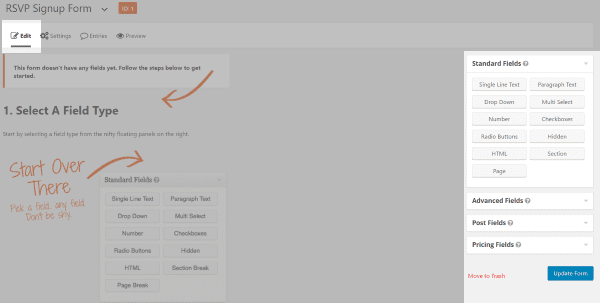 Under this is a menu strip that includes Edit, Settings (for forms, confirmations, and notifications), Entries, and Preview. This lets you navigate through settings for your current form. Letβs look at them in detail.
