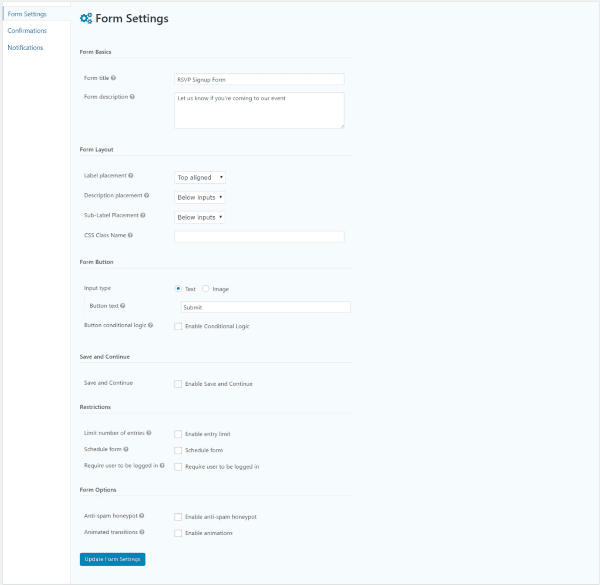 Settings include Form Settings, Confirmation, and Notifications. Hereβs a closer look at each one.