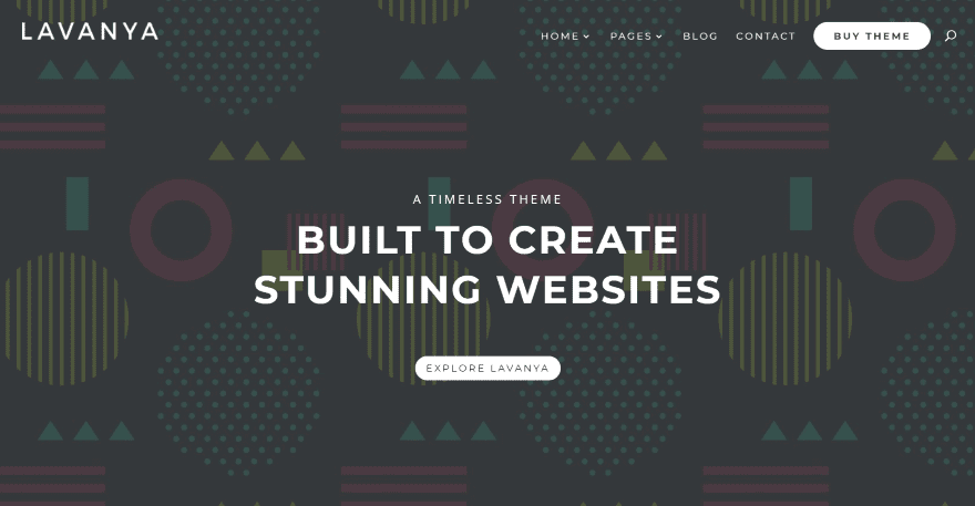 Lavanya comes with 10 pages including three home pages designed for different types of websites. One of those homepages is called Non Profit. This home page displays a full-screen image with tagline and CTA. Under this is a section of blurbs with styled icons for causes. Full-width sections display extra-wide images on one side and a block of color on the other. Both are overlapped with a block of text for the title, description, and button. Several of these alternate positions as you scroll down the page. It also includes embedded video, blurbs over patterned backgrounds, a blog section, testimonials, a subscription form, and a contact form.