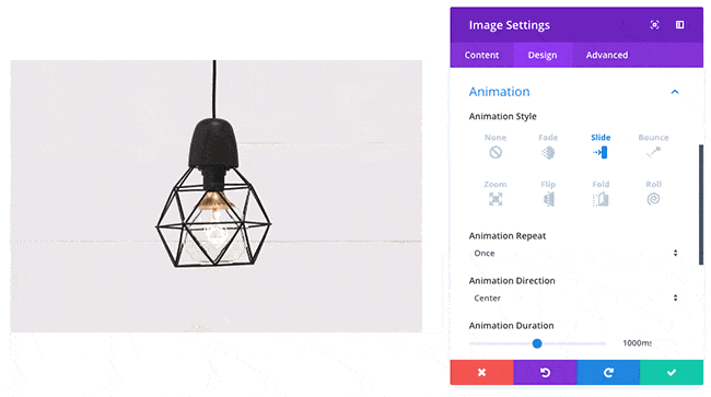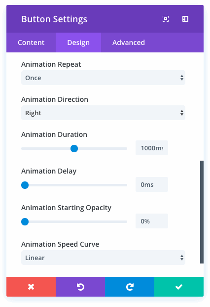 - Animation Starting Opacity – By default, all animations fade in from a starting opacity of 0. This can be adjusted to minimize or remove the fading effect.