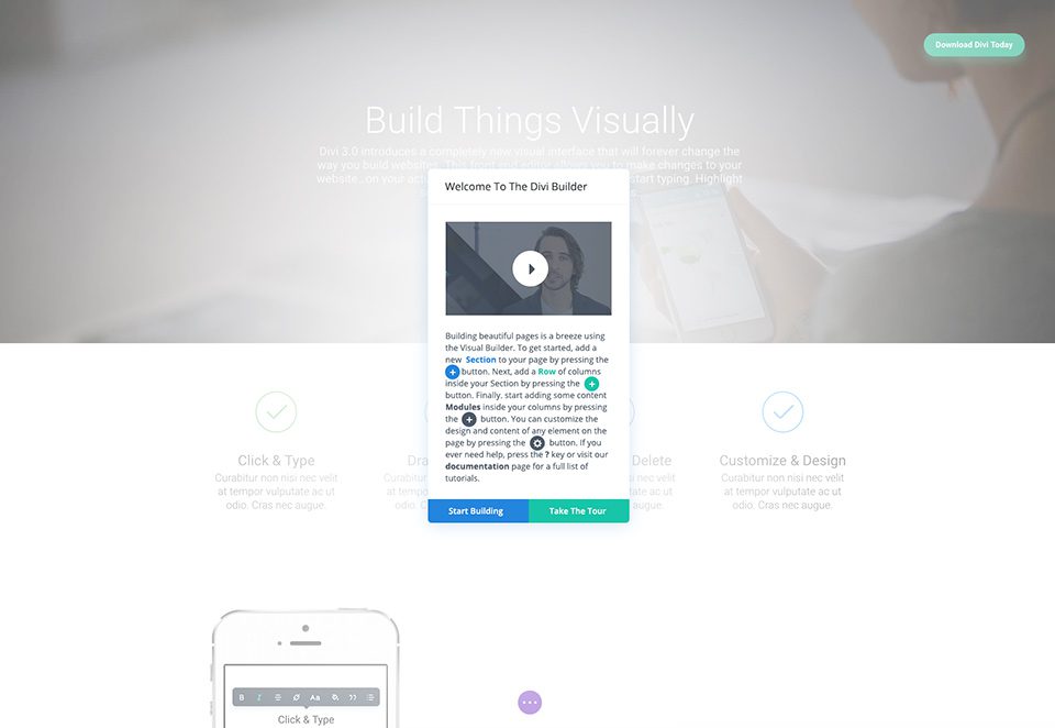 Join the most enthusiastic and loving WordPress theme community on the web and download Divi 3.0 today. Using the new Visual Builder, you can build websites faster than ever before with its incredibly fast and intuitive visual interface. You have to see it to believe it!