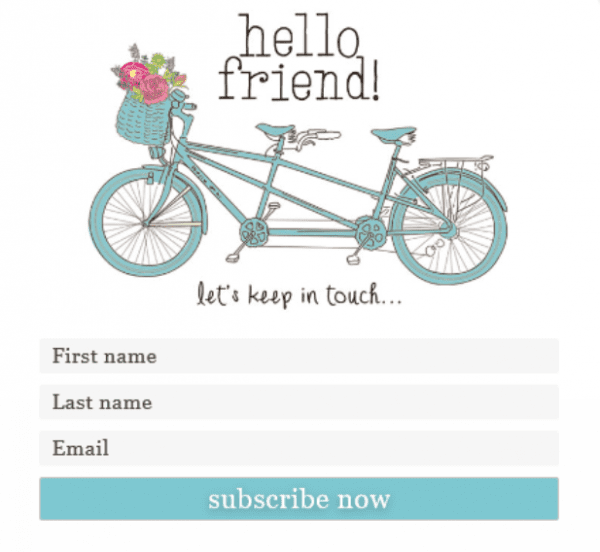 The example below is from Gwen’s Nest. It features imagery and fonts that stay true to the website’s branding. The friendly dialogue is also in tune with the familiar and casual tone of the site. In other words, it’s a natural extension of the experience of visiting Gwen’s Nest.
