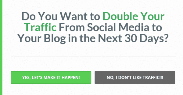 Also, consider including a creative “wrong” button to offer visitors an unattractive alternate option. You don’t want to insult your visitors, but you can have a little fun with the copy on these sorts of buttons.