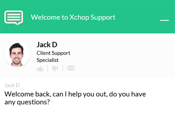Offering support helps customers make a decision and personalizes their experience. The support popup below from Xchop appears after leaving the product purchase page. It offers the name and a photo of a support staff member to further emphasize the realness of the interaction.